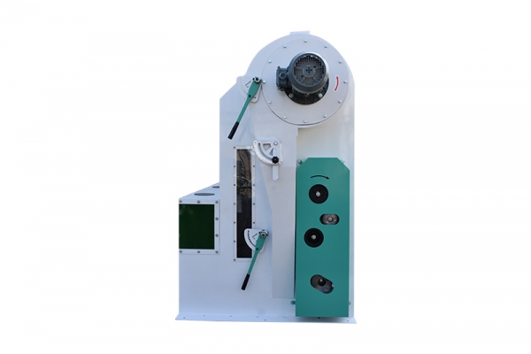 風選器的吸風道中的風量控制裝置和可調節(jié)的雙壁。 這有助于平衡氣流并增加從谷物中分離的輕質雜質,清潔谷物通過卸料槽排出,從空氣中分離輕質雜質,讓后通過螺旋輸送機和減速口排出。